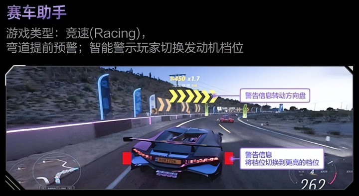 AGON爱攻AI显示器搭载专属AI画质调教引擎,能智能识别当前使用场景并优化画面参数。在电竞场景中,AGON爱攻AG277UX AI显示器堪称游戏神助攻——赛车游戏中可提前识别弯道与转速,提供黄色箭头(转向提示)与红色方框(换挡提示),辅助玩家掌握最佳过弯与换挡时机。FPS对战时自动点亮关键区域捕捉敌人动向,魂类暗场游戏则通过夜视增强算法提升阴影细节。而多擎HDR格式驱动(HDR10+、DolbyVision等),配合AI智能优化,让影视场景的色彩还原更真实,暗场表现更纯粹。
